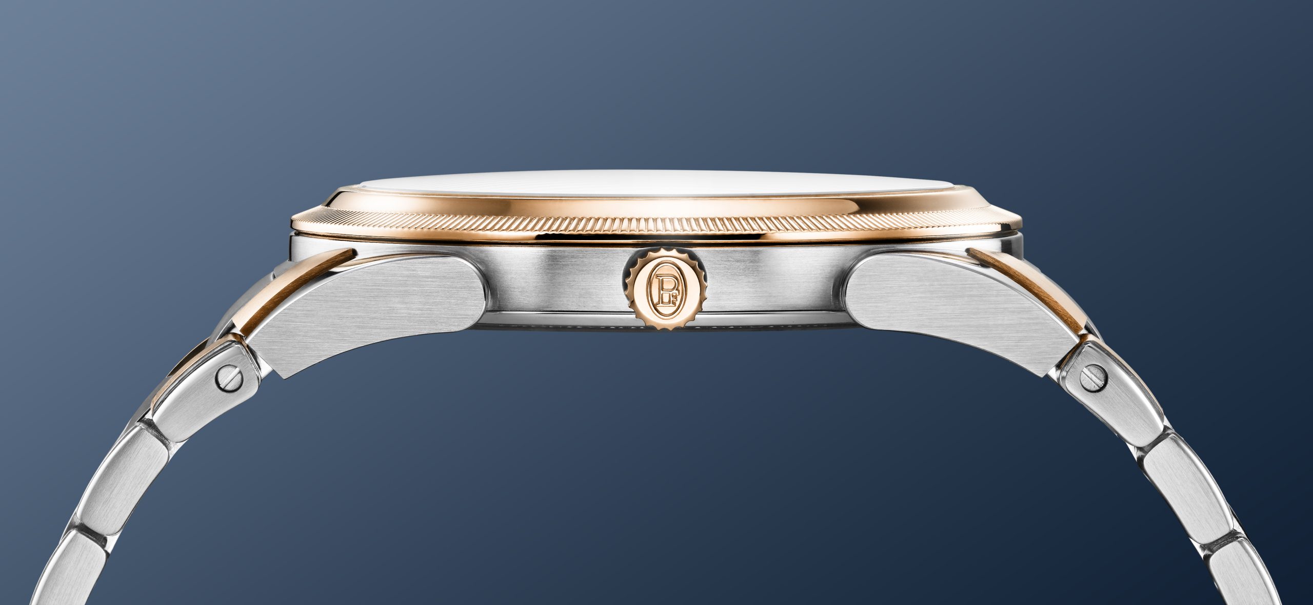 في إصدار Tonda PF Micro-Rotor الجديد، تتجاوز بارميجياني فلورييه المفهوم التقليدي للتصاميم ثنائية المعدن لتقدّم رؤية فنية متكاملة تحتفي بالانسجام والتوازن. فبدلاً من مجرّد التناوب بين المواد، يُمثّل المزج بين الفولاذ المقاوم للصدأ والذهب الوردي تعبيراً عن حسّ جمالي مدروس، حيث يُصاغ كلّ عنصر، من العلبة وحتى المشبك، بدقة متناهية تضمن انسيابية بصرية متكاملة.