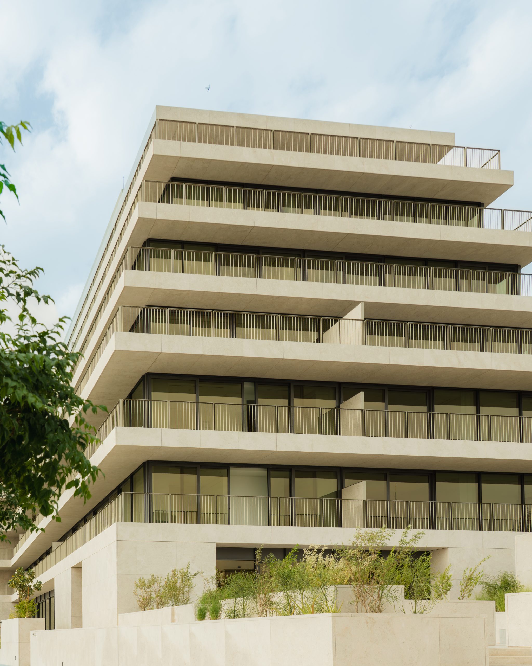 This is not another glass tower. The exterior façade is composed as a refined rhythm of vertical lines and deep, dark tones, where texture meets richness. The dark palette is deliberate: timeless, powerful, and sophisticated. It anchors the building with gravitas, giving it presence without spectacle and elegance without noise